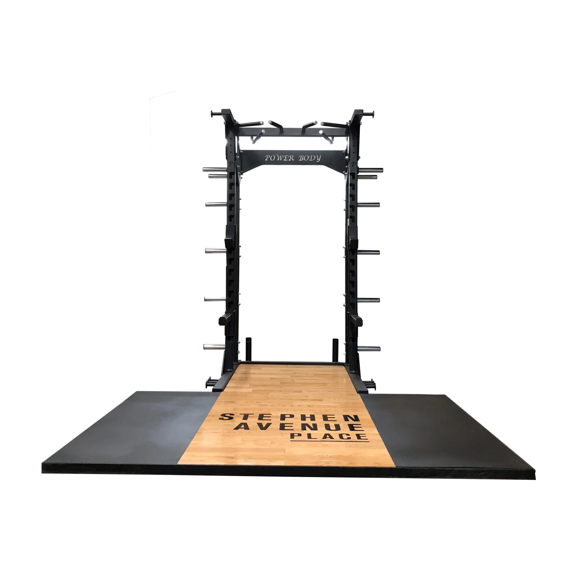 This platform frame is the perfect equipment for strength training because it offers a designated spot for you to perform your deadlifts. You can choose from 3 options when ordering: Frame Only, Frame with all rubber platform, or Frame with combination of solid oak and rubber. This deadlift frame also helps keep things quiet: it’s designed to reduce noise
